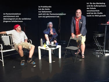 Es geht um die besten Szenen des Abends. Eine Auszählung der Stimmzettel nach jeder Szene bringt die entscheidenden Punkte für die favorisierte Gruppe. Der Wahlvorgang ist offen und spontan. Engagement lohnt sich! Was gespielt wird, entscheidet ihr! Hier wir nicht diskutiert, hier wird gespielt, gelitten und gelacht.